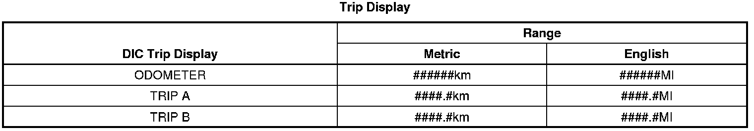 The IPC receives a serial data message from the ECM. The distance information is calculated by the IPC using the vehicle speed information from the ECM. These values are retained during ignition OFF and can be changed between English and Metric units accessing the DIC English/Metric menu. The IFE display cannot be reset.