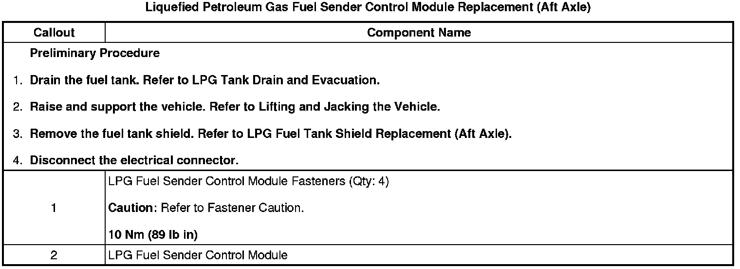 Liquefied Petroleum Gas Fuel Sender Control Module Replacement (Aft Axle)