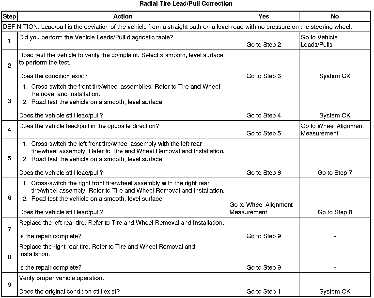 Radial Tire Lead/Pull Correction