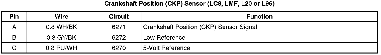Crankshaft Position (CKP) Sensor (LC8, LMF, L20 or L96)