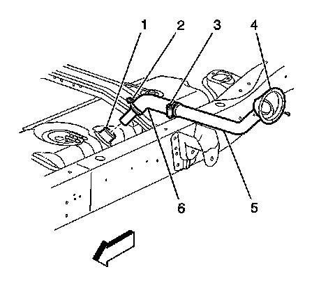 7. Remove the fuel fill hose (6).