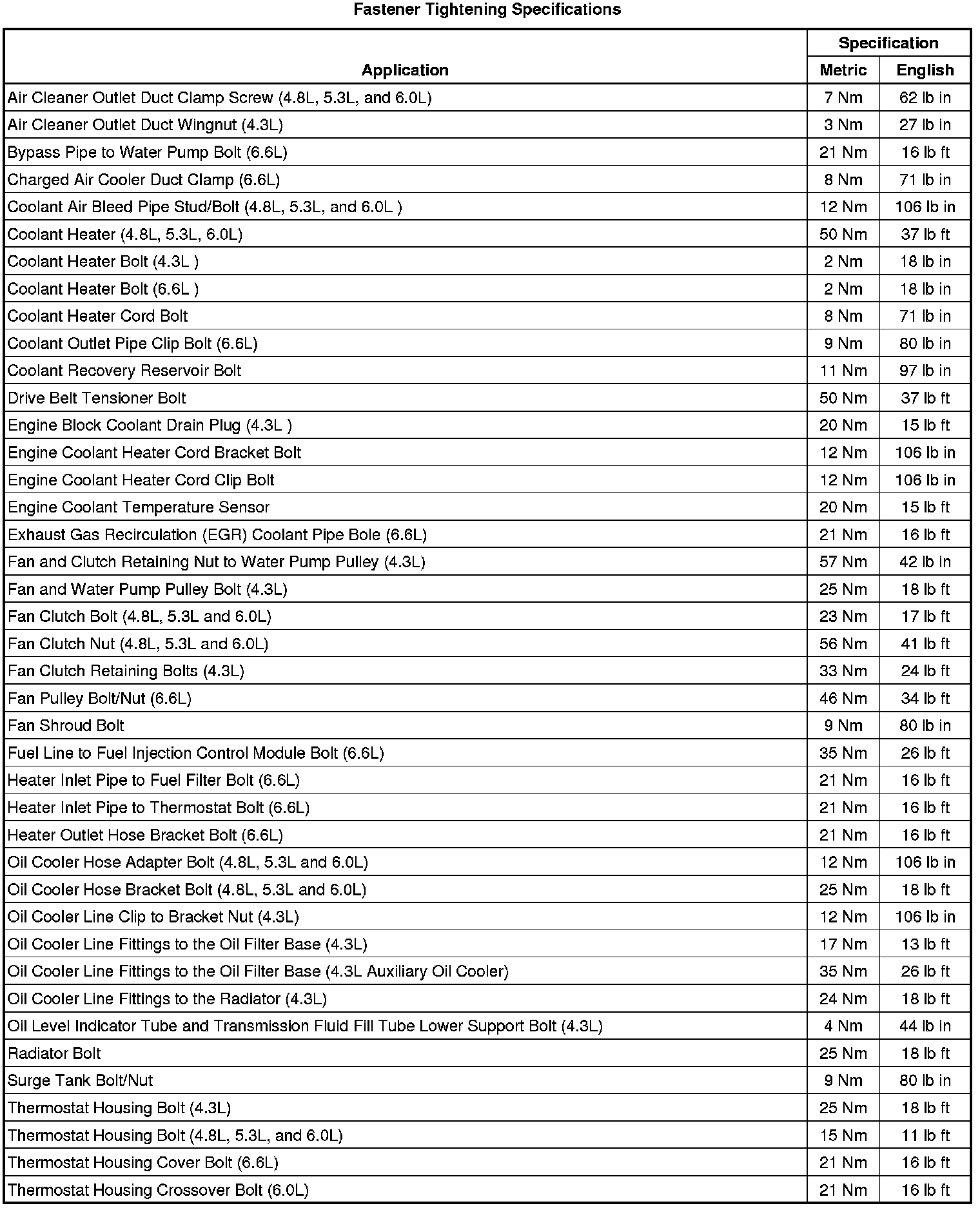Fastener Tightening Specifications
