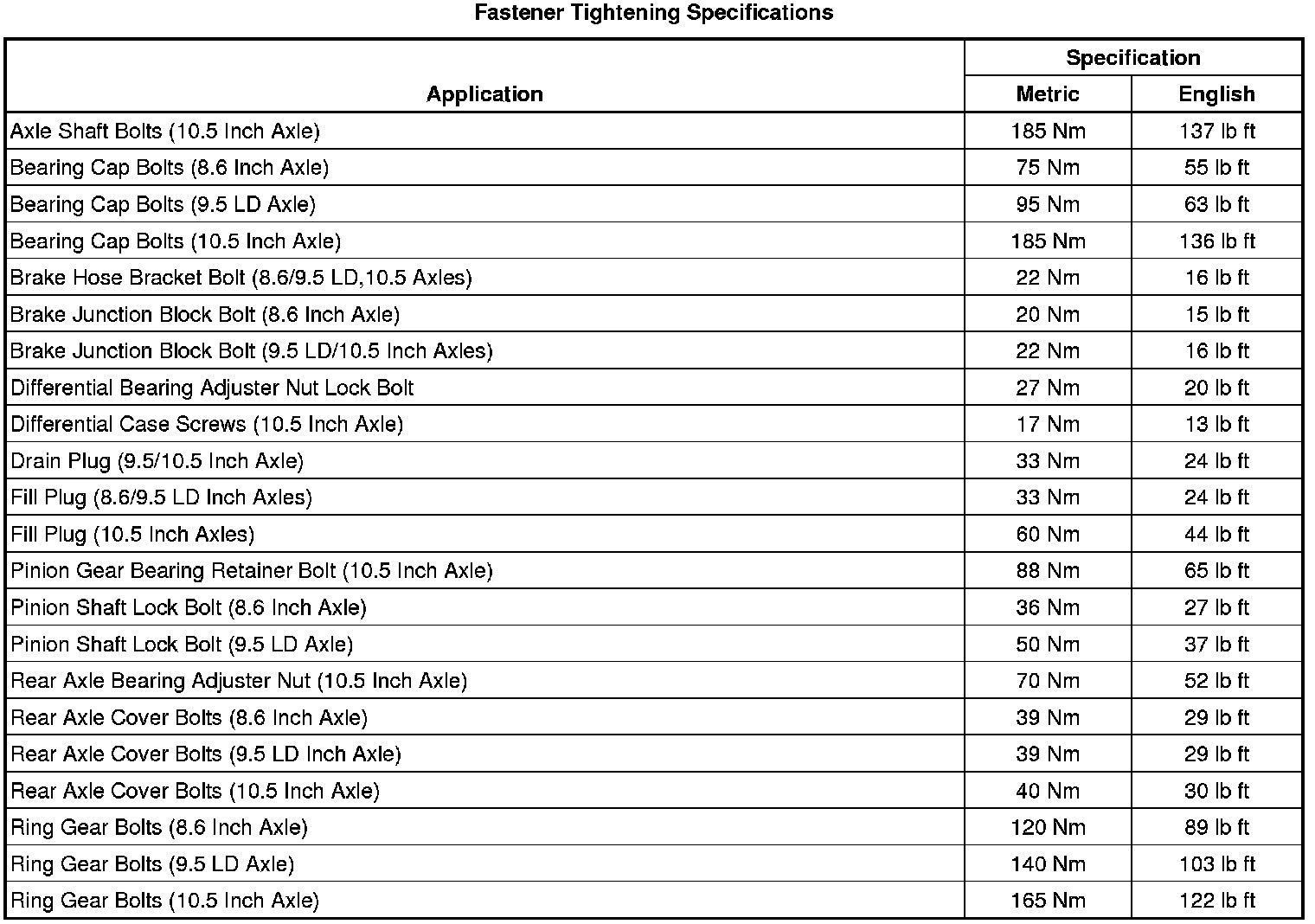 Fastener Tightening Specifications