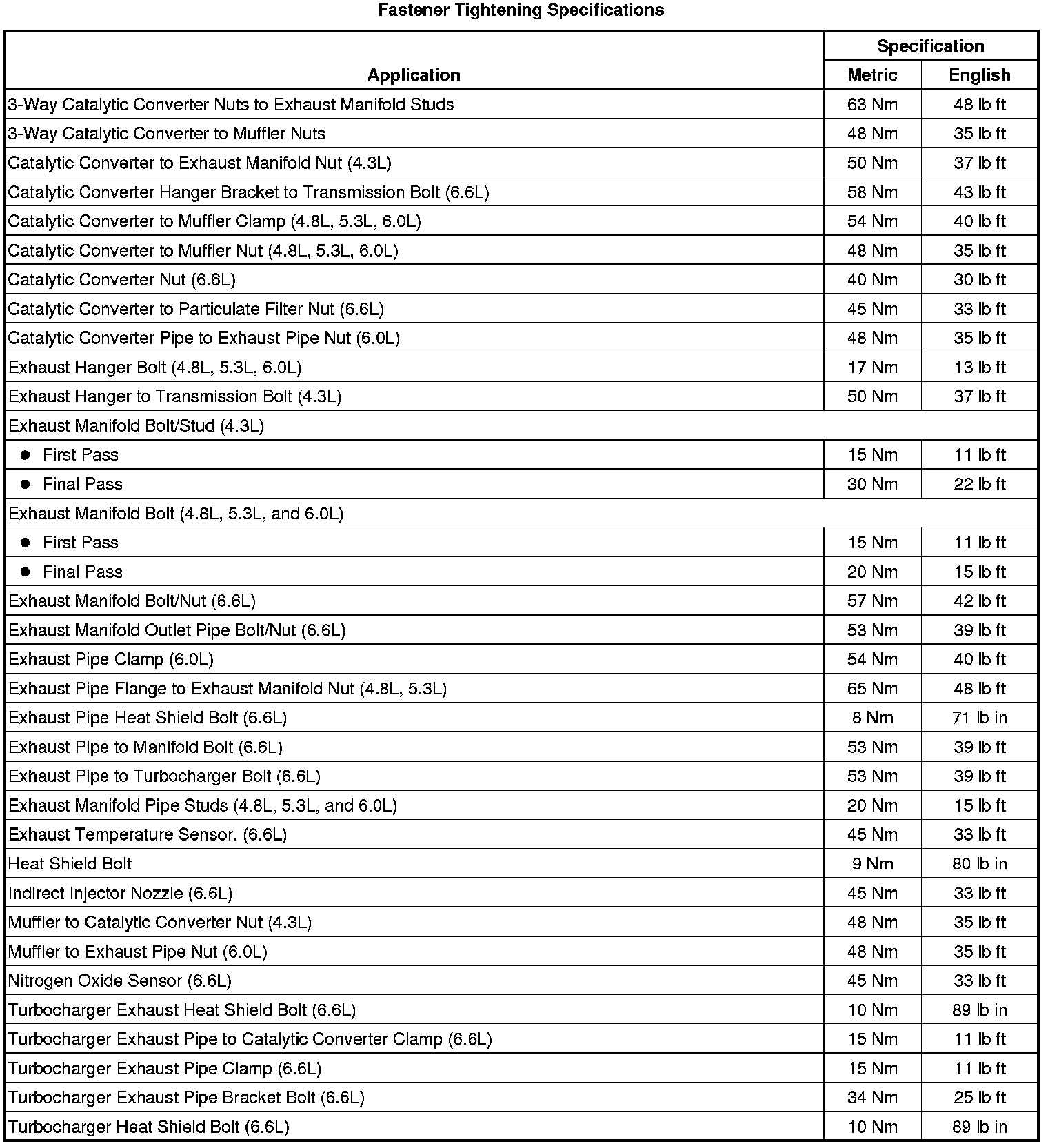 Fastener Tightening Specifications