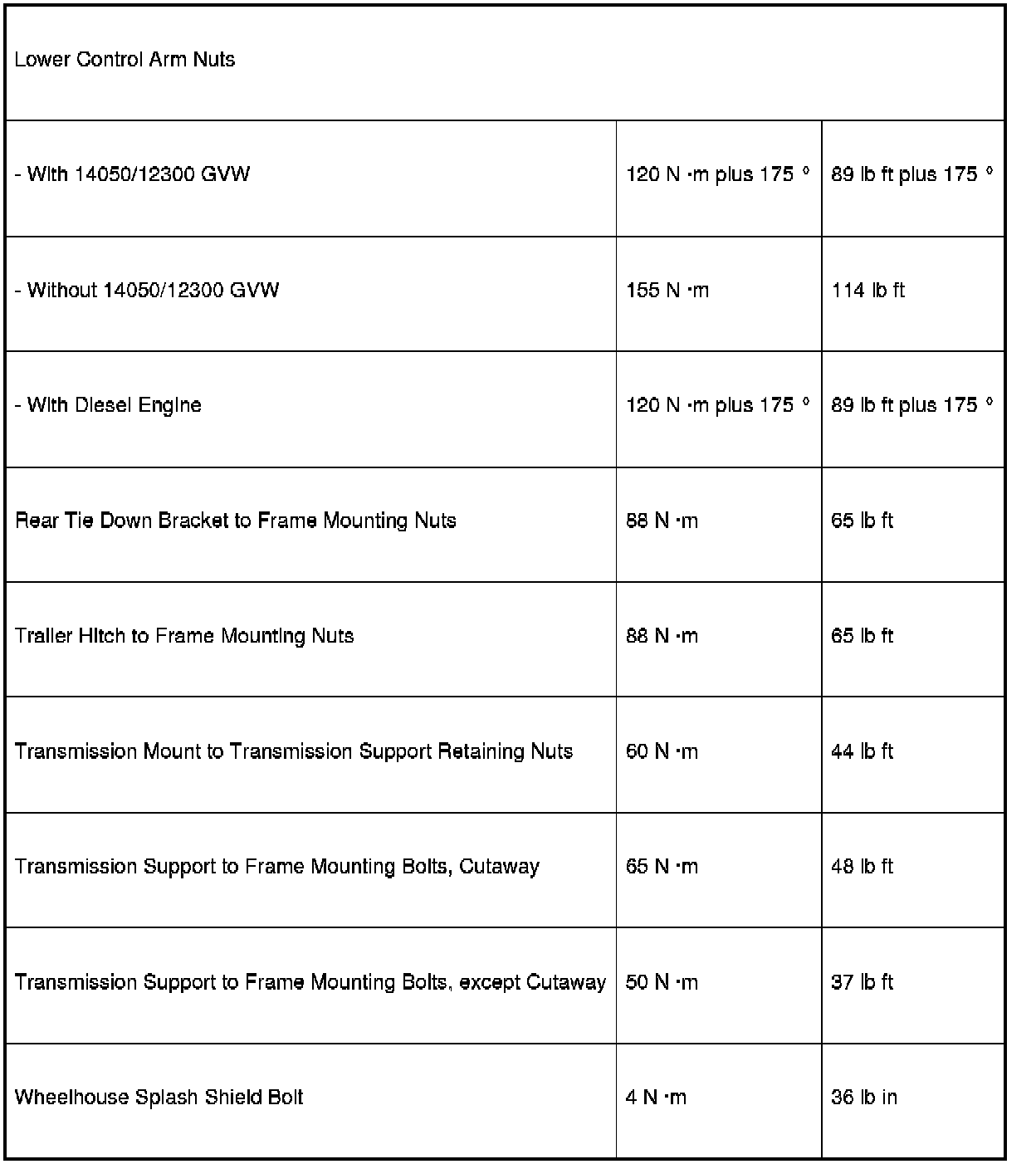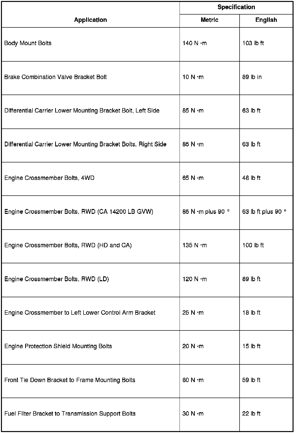 Fastener Tightening Specifications