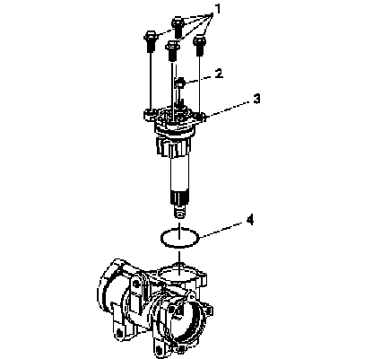 10. Remove the steering gear pitman shaft and housing cover (3). Ensure the steering gear pitman shaft O-ring (4) is removed. If the O-ring is not present, remove the O-ring from the housing.