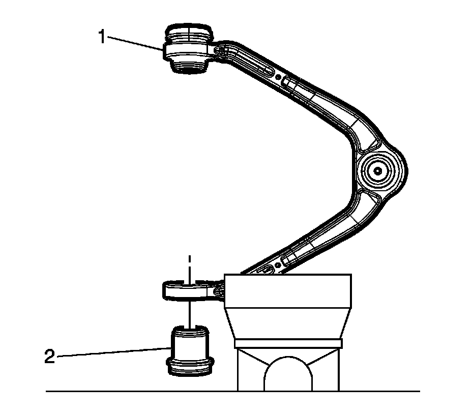 1. Using the hydraulic press, install the upper control arm bushings (1).