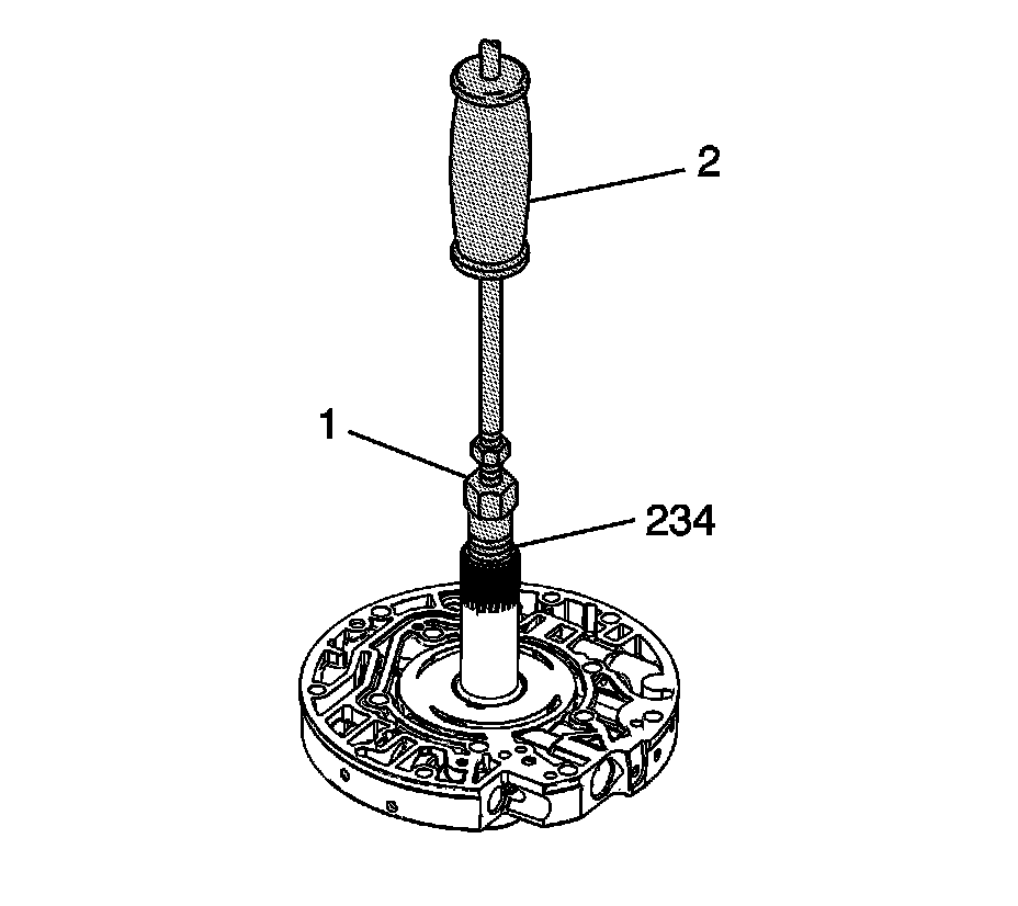 1. Using the J 21465-2 which is part of J 21465-01 - bushing service set (1) and the J 8092 - driver handle (2), install a new stator shaft front bushing (234).