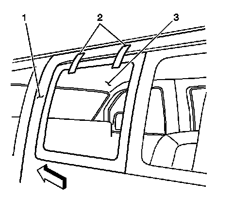 24. Place the bodyside glass locators (2) onto the slots in the pinchweld flange.