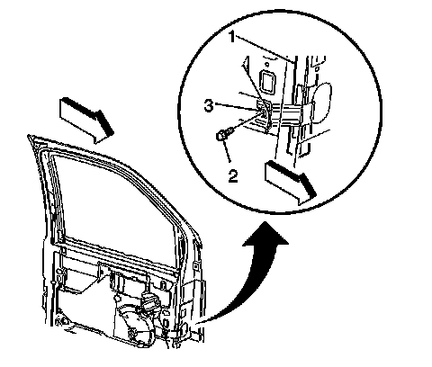1. Remove the front door trim panel. Refer to Front Side Door Trim Panel Replacement Front Side Door Trim Panel Replacement.