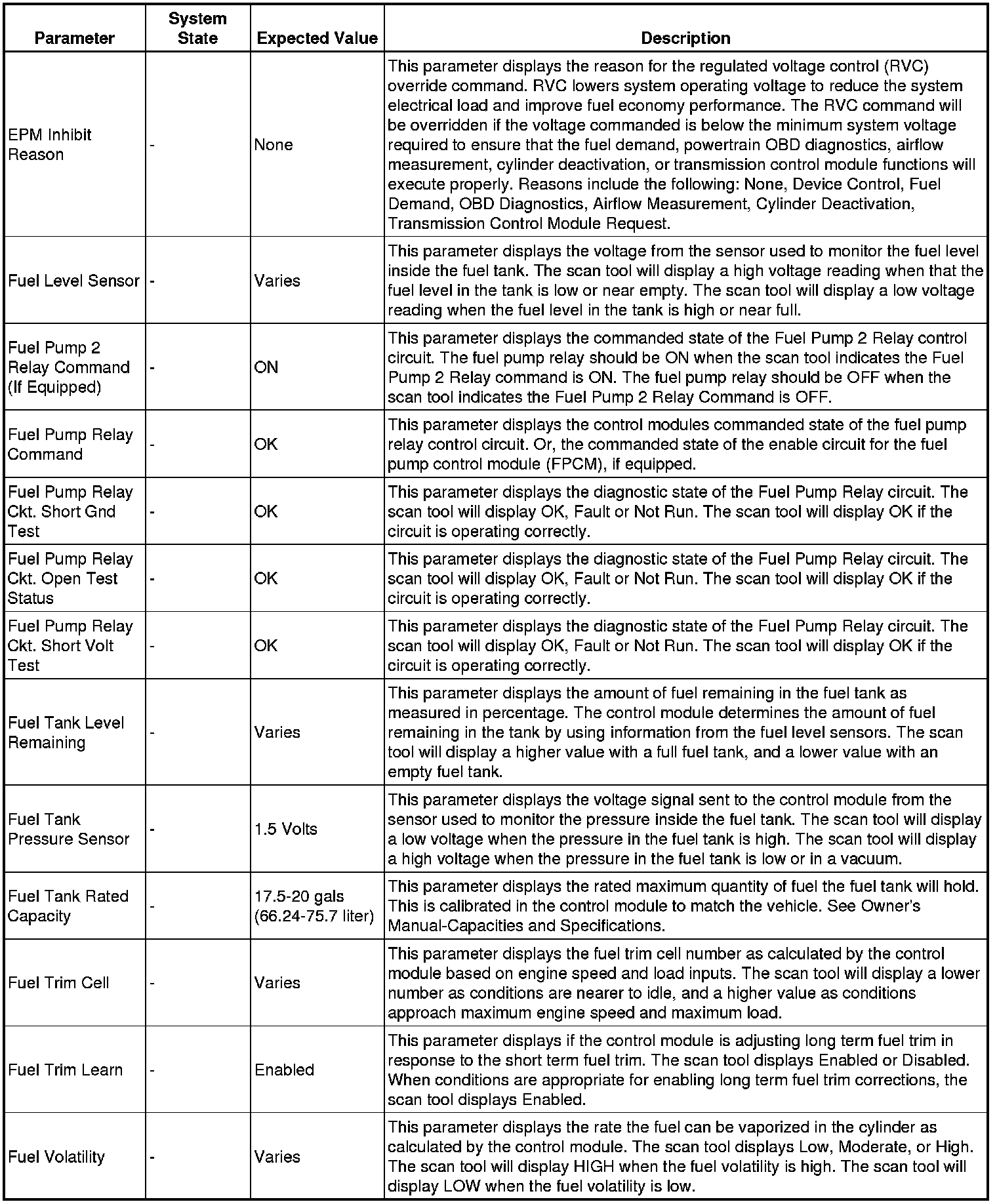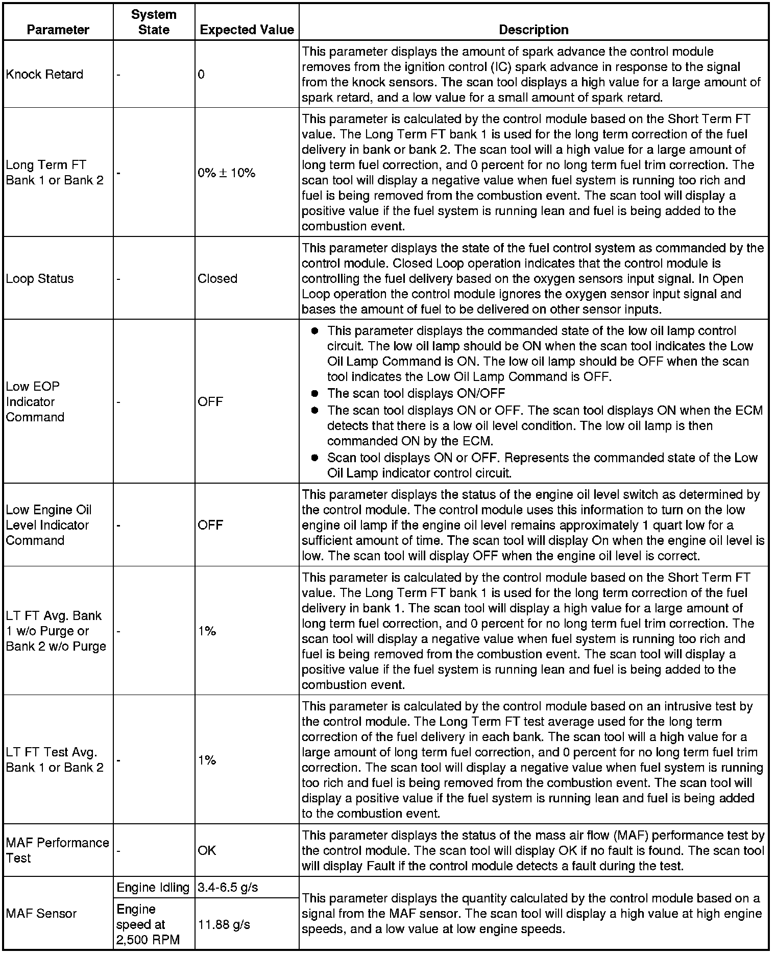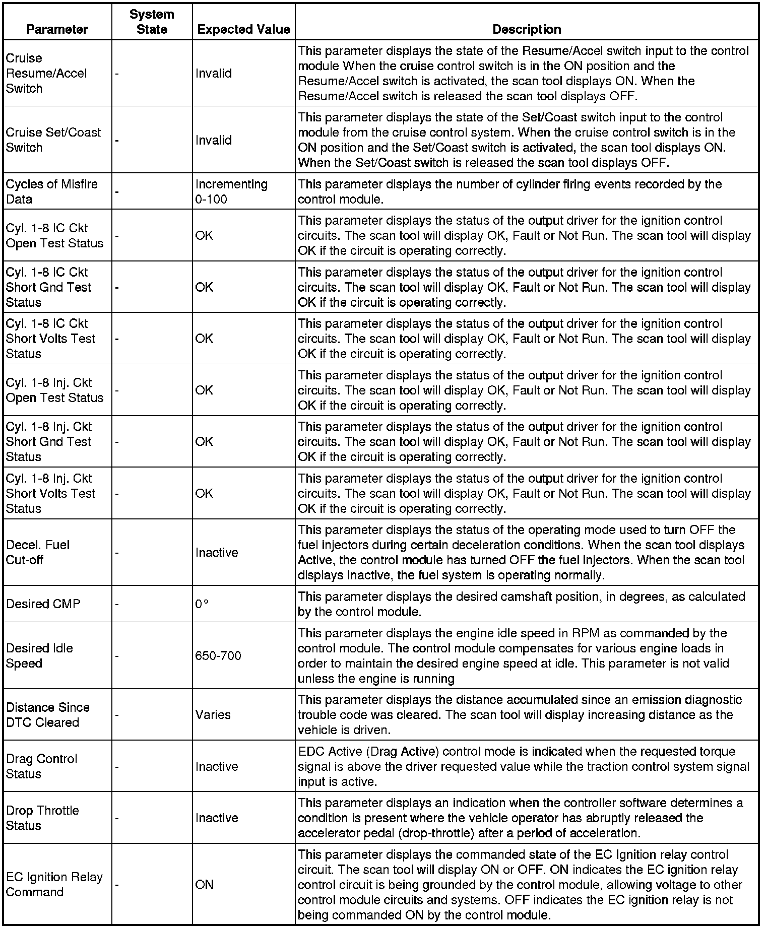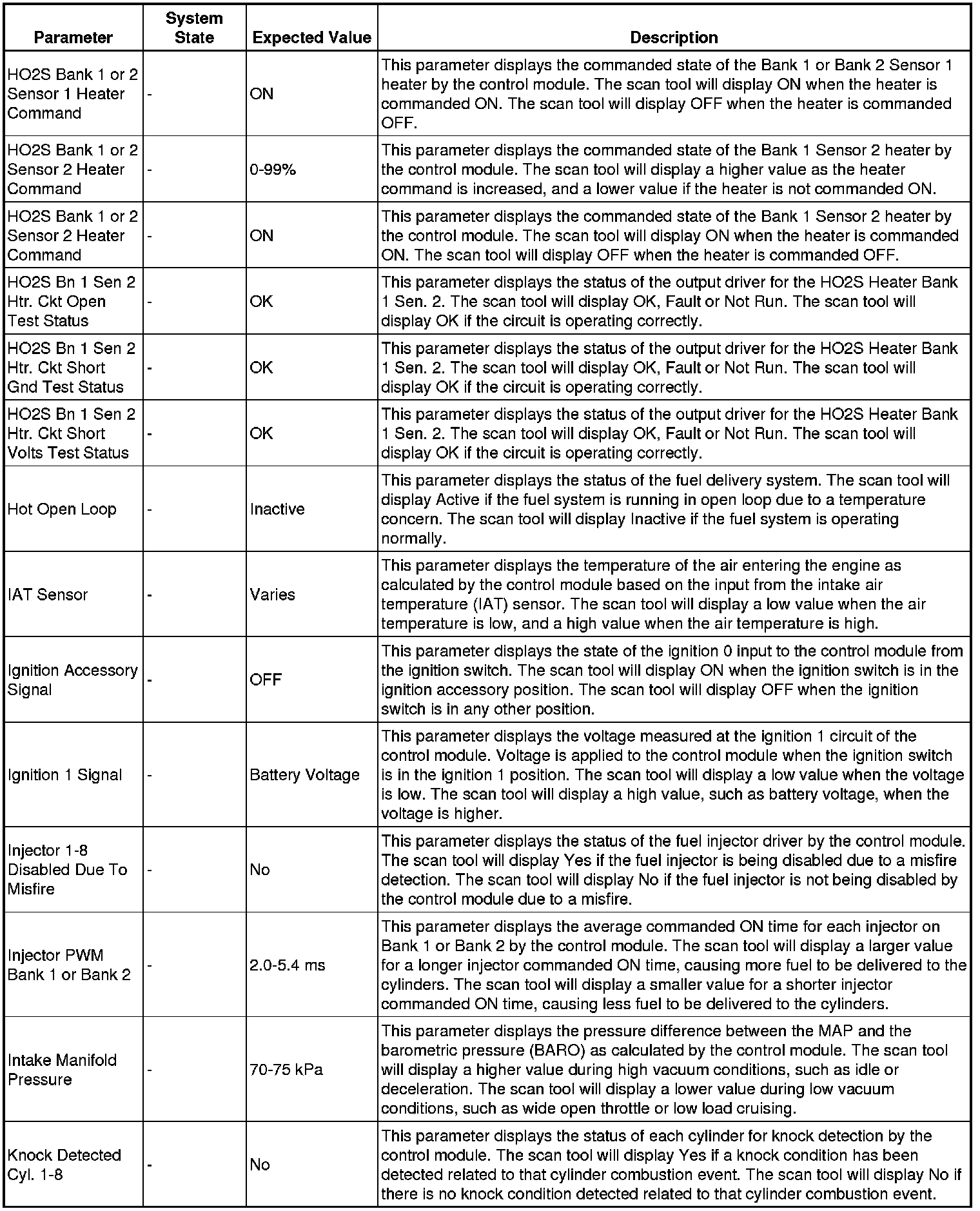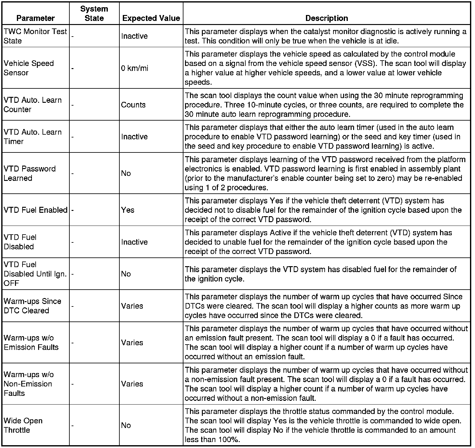 The Engine Control Module Scan Tool Data List contains all engine-related parameters that are available on the scan tool. The list is arranged in alphabetical order. A given parameter may appear in any one of the data lists, and in some cases may appear more than once, or in more than one data list in order to group certain related parameters together.