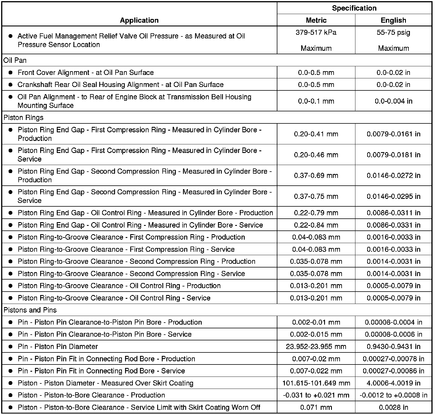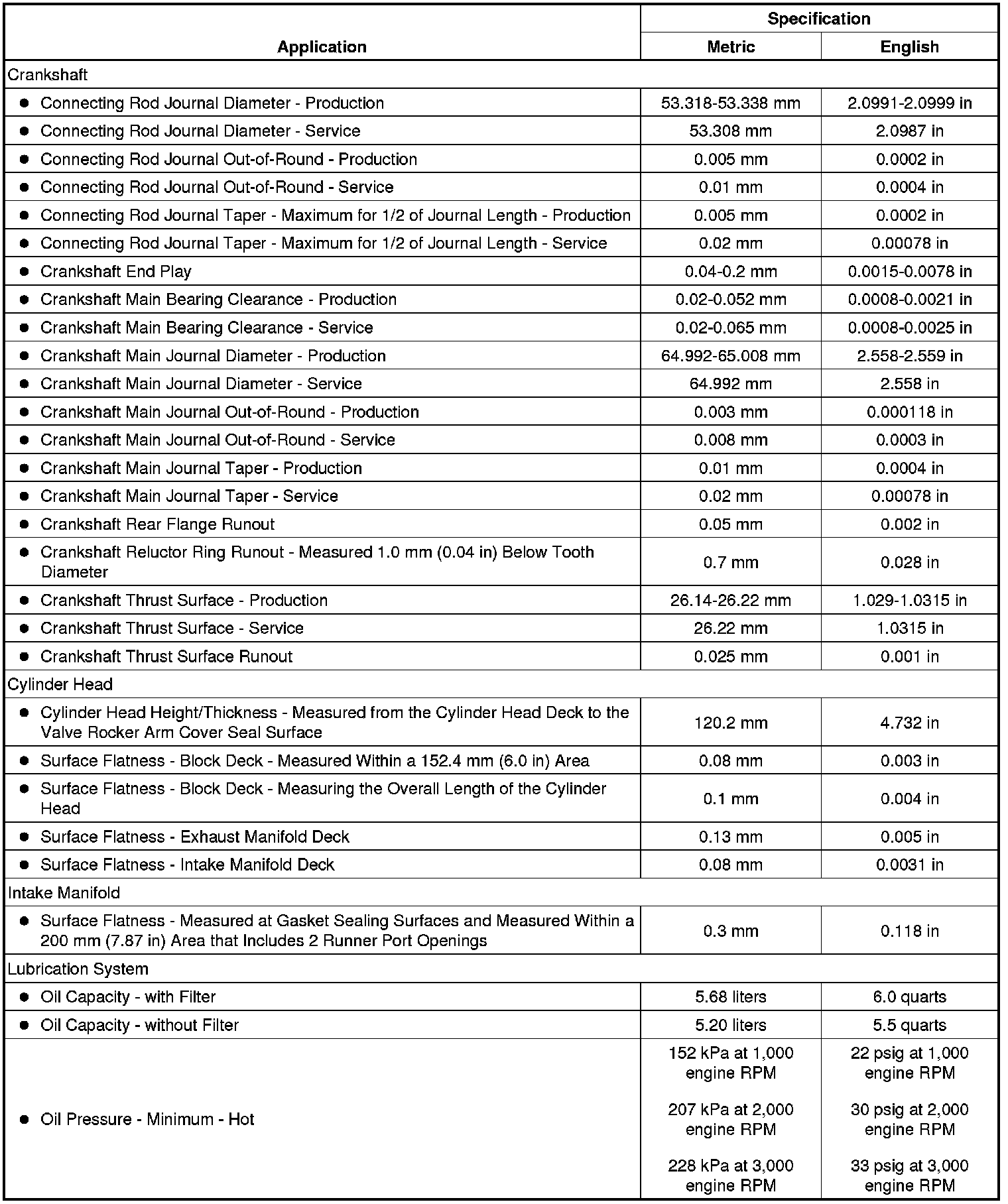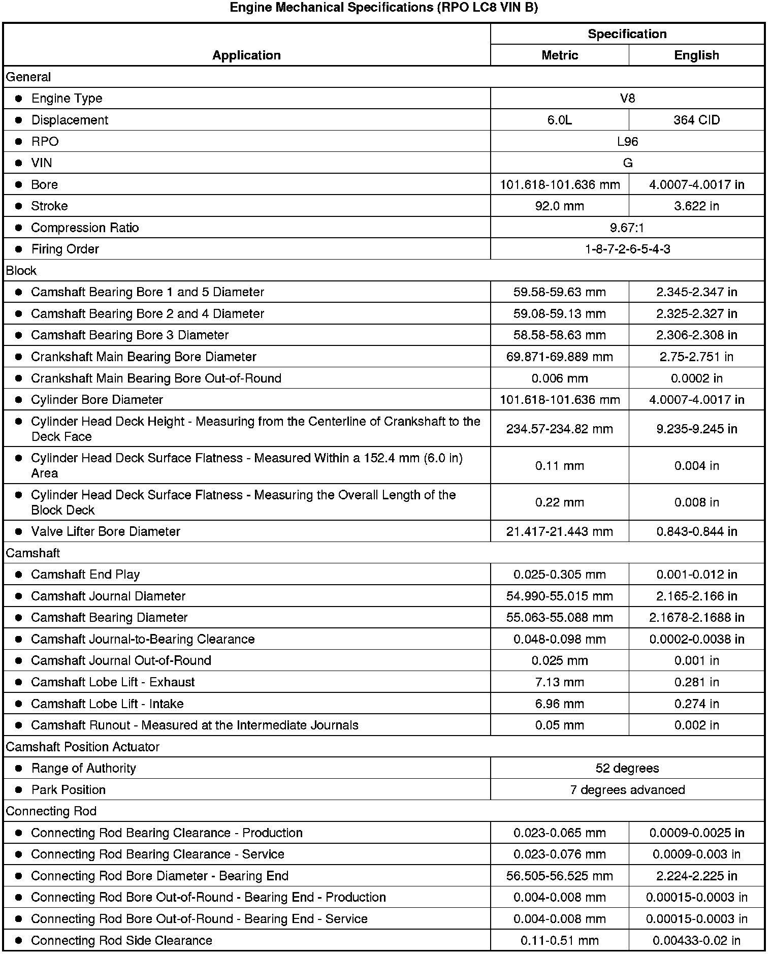 Engine Mechanical Specifications (RPO LC8 VIN B)