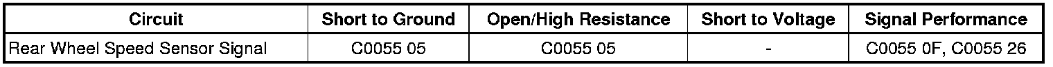 * The EBCM detects a short to voltage, short to ground or an open/high resistance on the rear wheel speed sensor signal circuit.