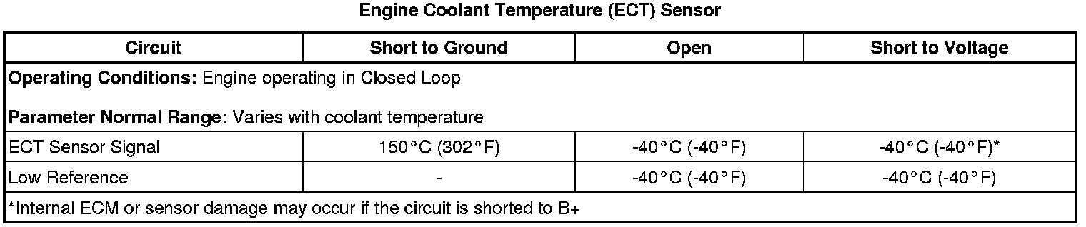 * An IAT sensor that is skewed, due to more resistance than is normal, can widen the spread between the 2 sensors and cause this DTC to set. Measure and record the resistance of the IAT sensor at various ambient temperatures, and then compare those measurements to the Temperature vs. Resistance Table. Refer to Temperature Versus Resistance Temperature Versus Resistance.