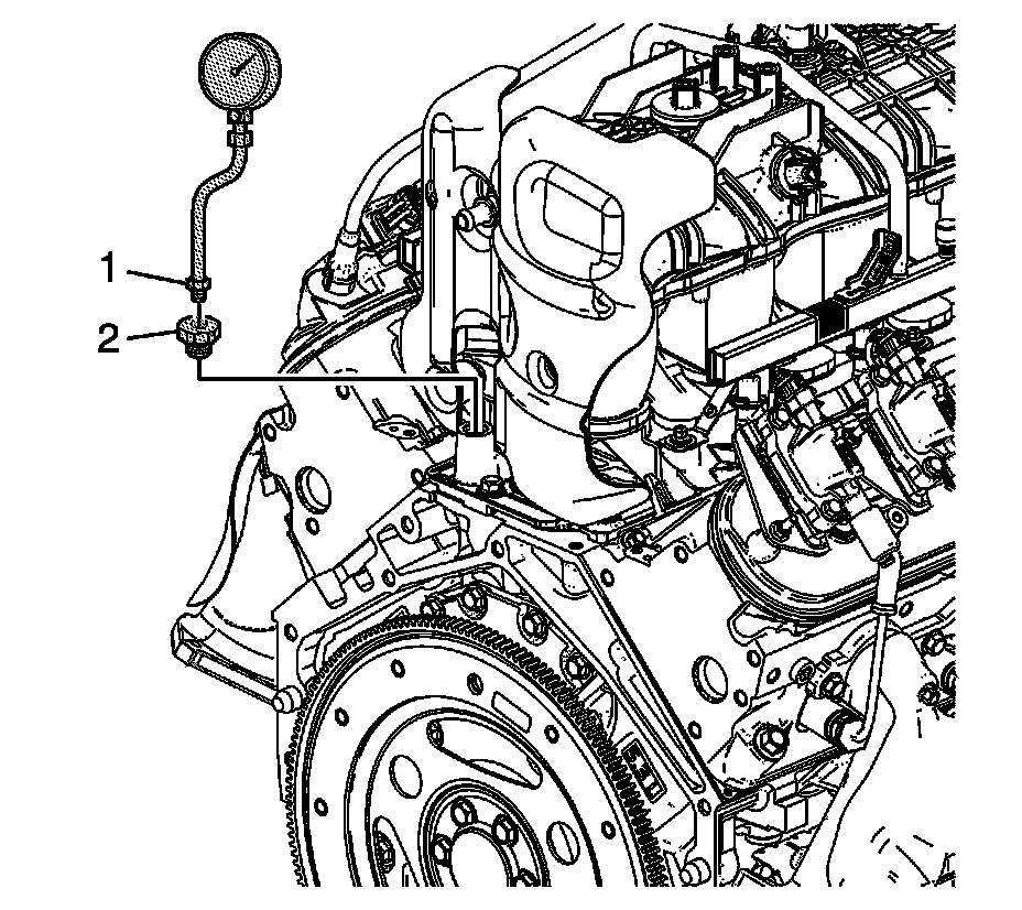 7. Install the EN-21867-16 - adapter (2) and EN-21867 - pressure gauge (1), or equivalent.