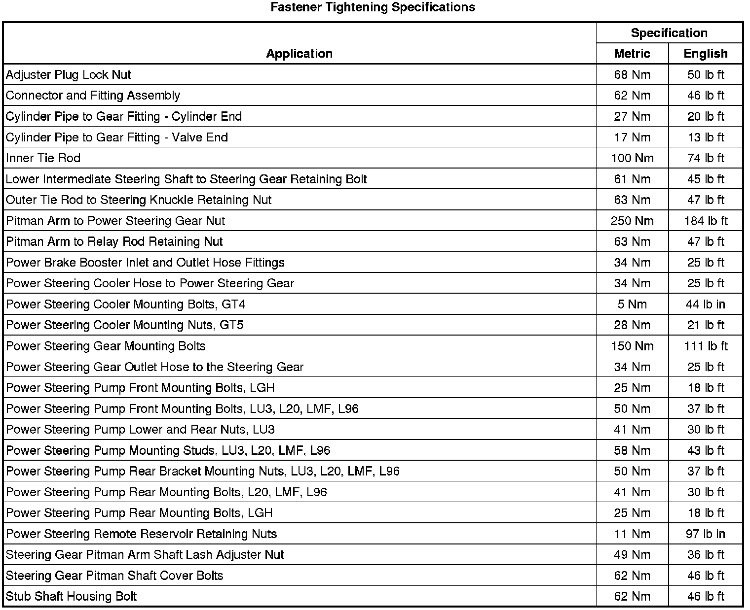 Fastener Tightening Specifications