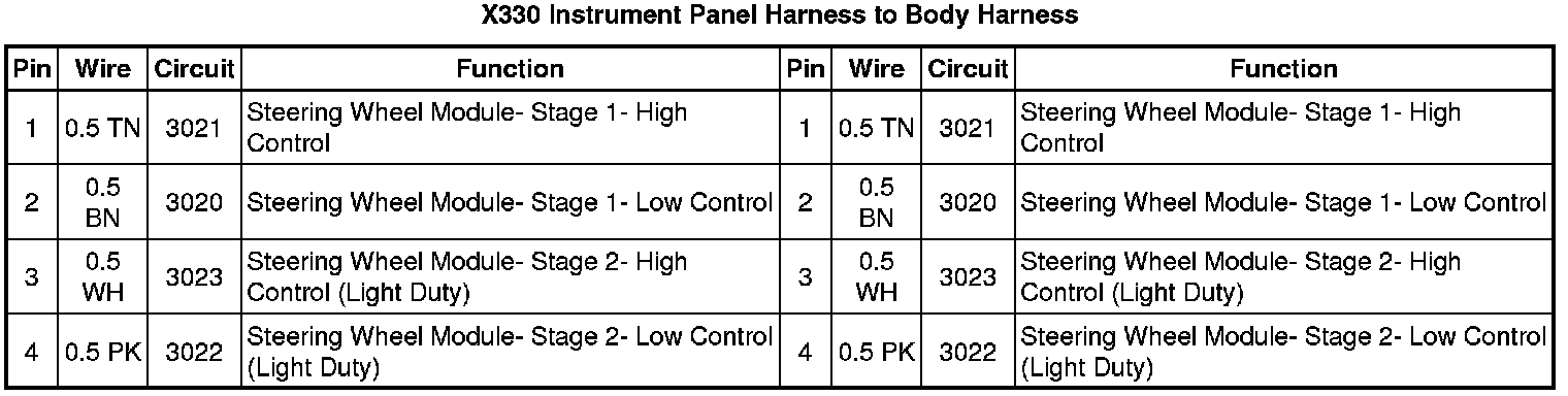 X330 Instrument Panel Harness to Body Harness