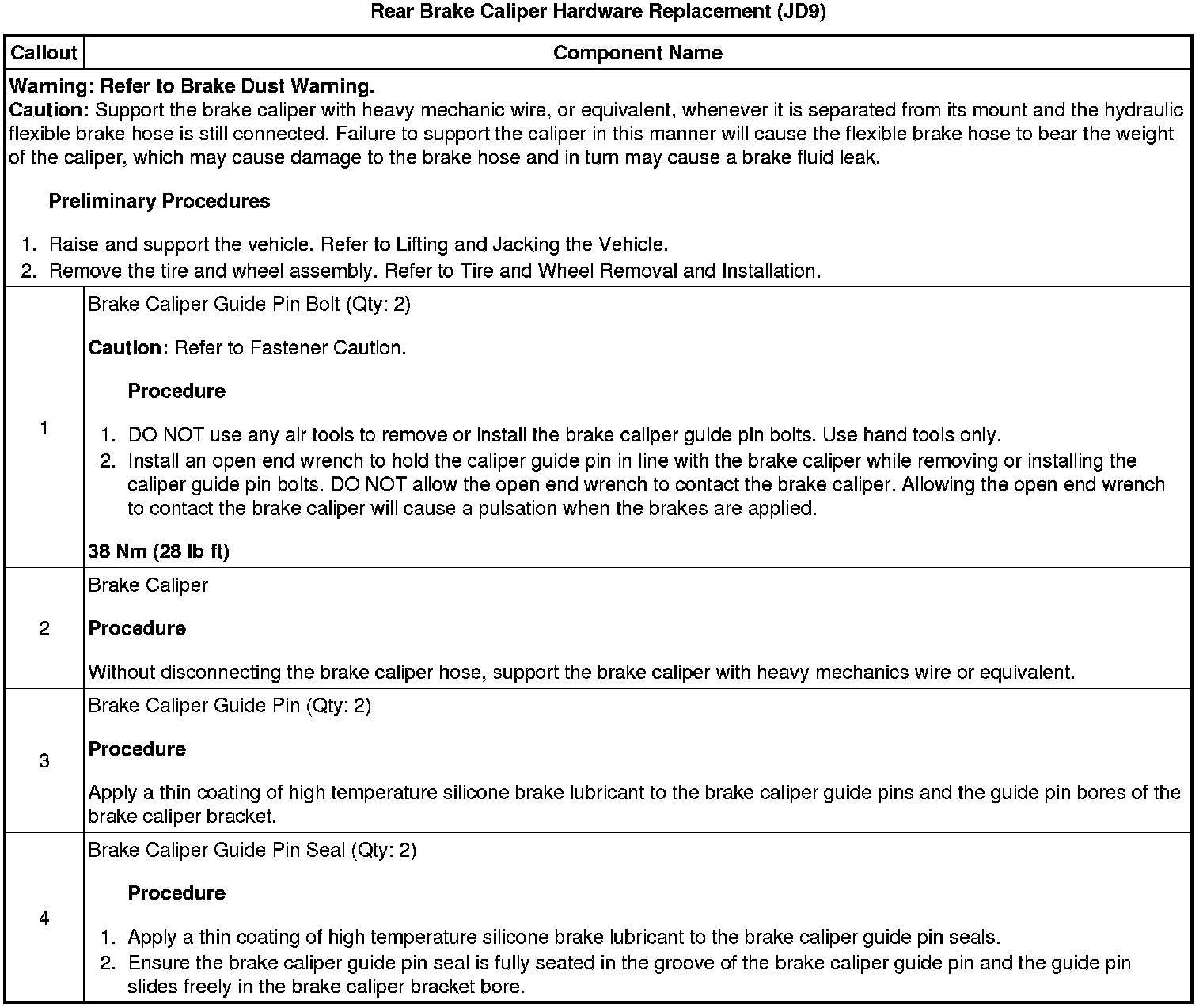 Rear Brake Caliper Hardware Replacement (JD9)