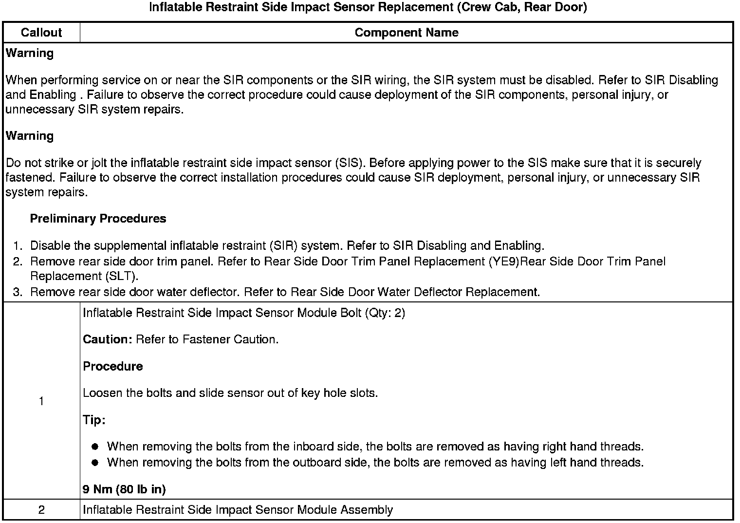 Inflatable Restraint Side Impact Sensor Replacement (Crew Cab, Rear Door)