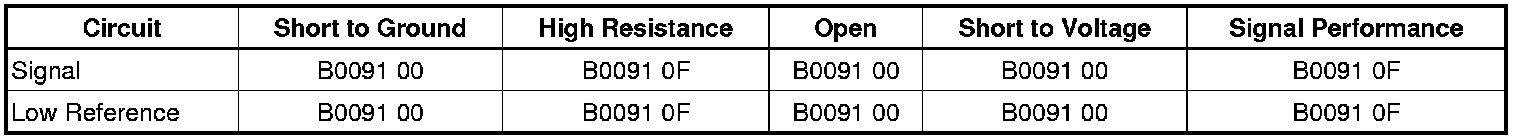 2. Verify DTC B0091 00 or DTC B0091 0F is not set as current.