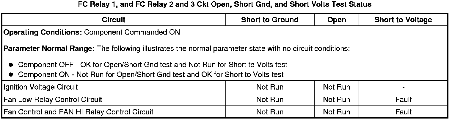 * FC Relay 1 Ckt Open, Short Gnd, and Short Volts Test Status