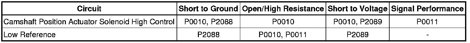 - Camshaft Position (CMP) Actuator Solenoid Control Circuit High Voltage
