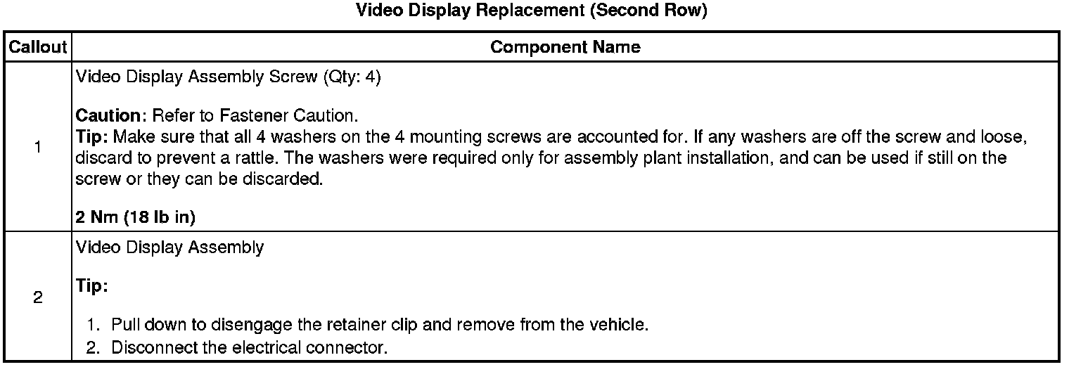 Video Display Replacement (Second Row)