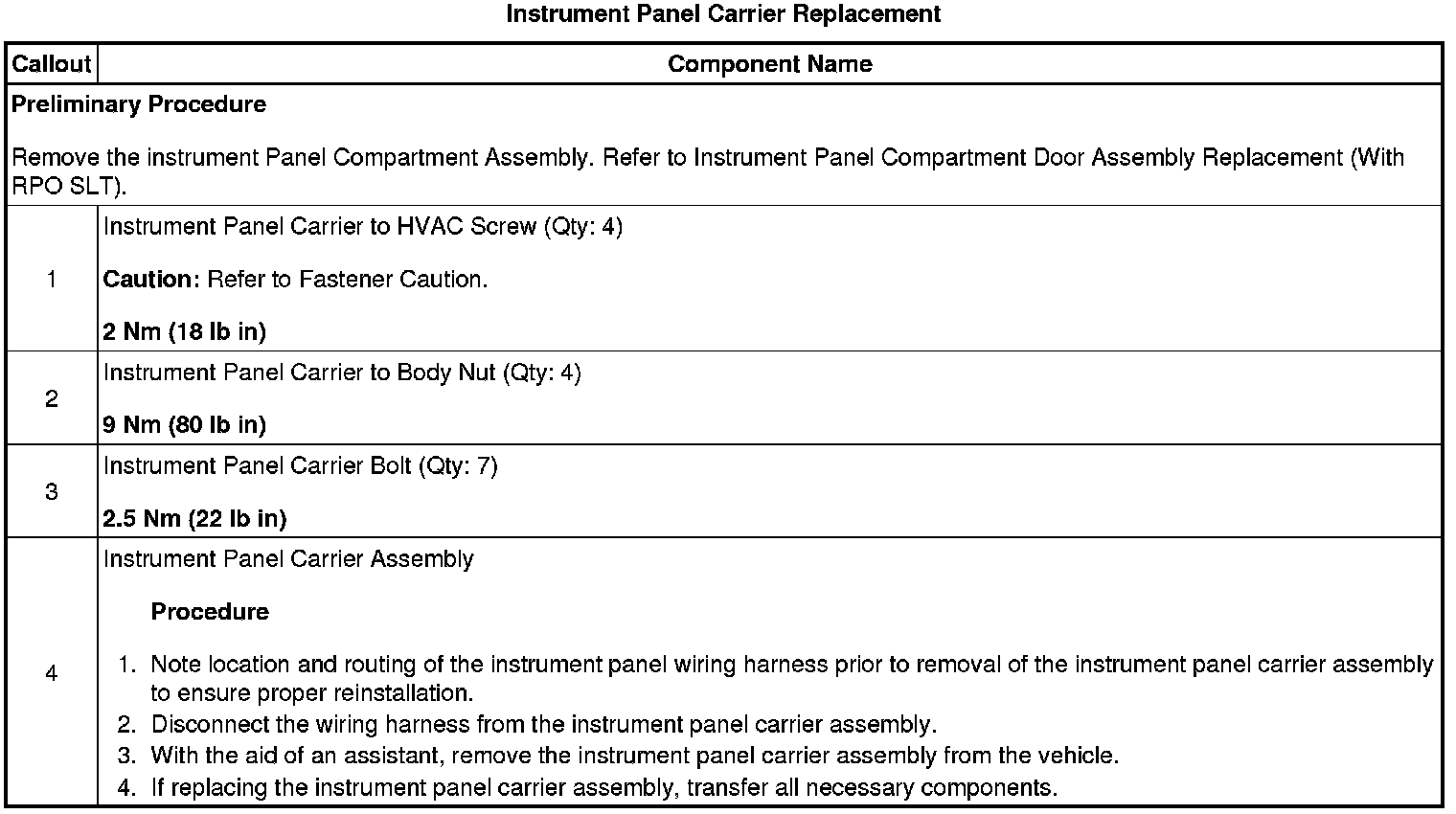 Instrument Panel Carrier Replacement