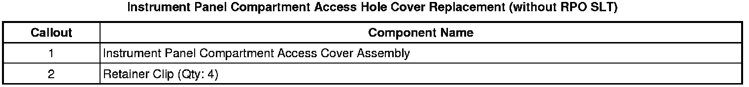 Instrument Panel Compartment Access Hole Cover Replacement (without RPO SLT)