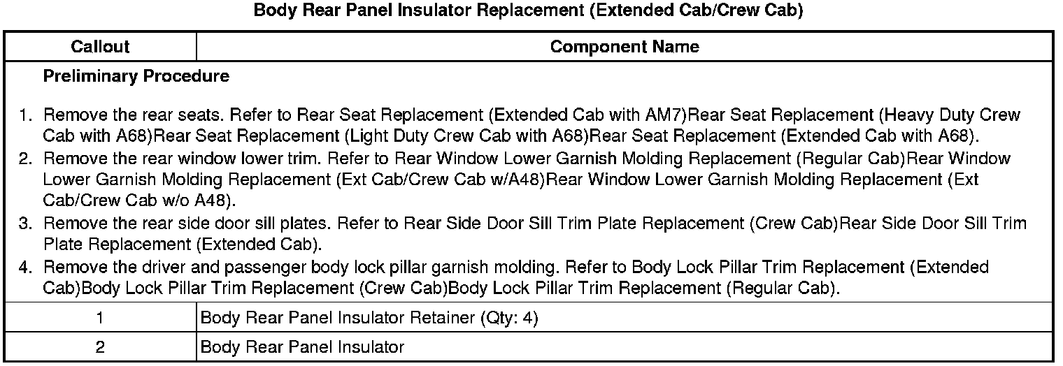 Body Rear Panel Insulator Replacement (Extended Cab/Crew Cab)