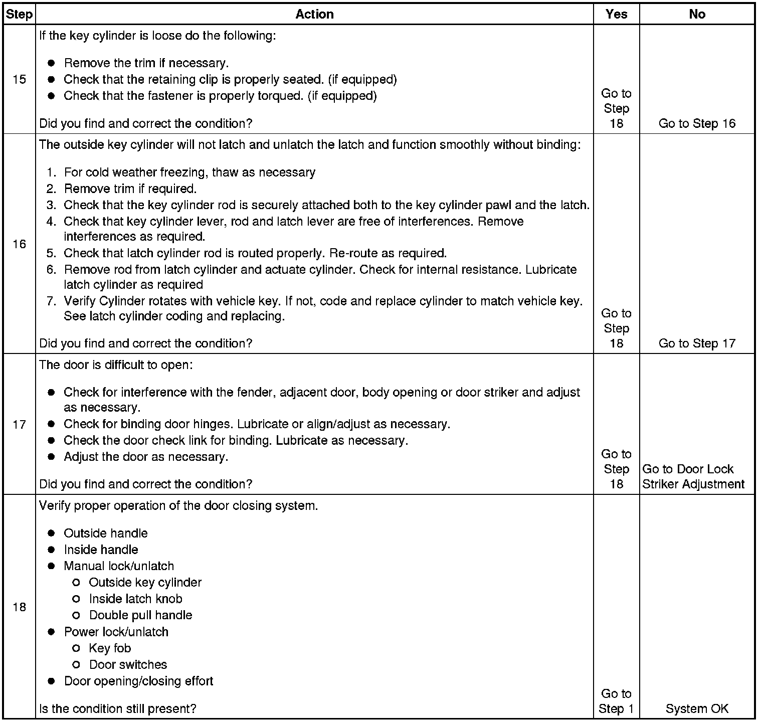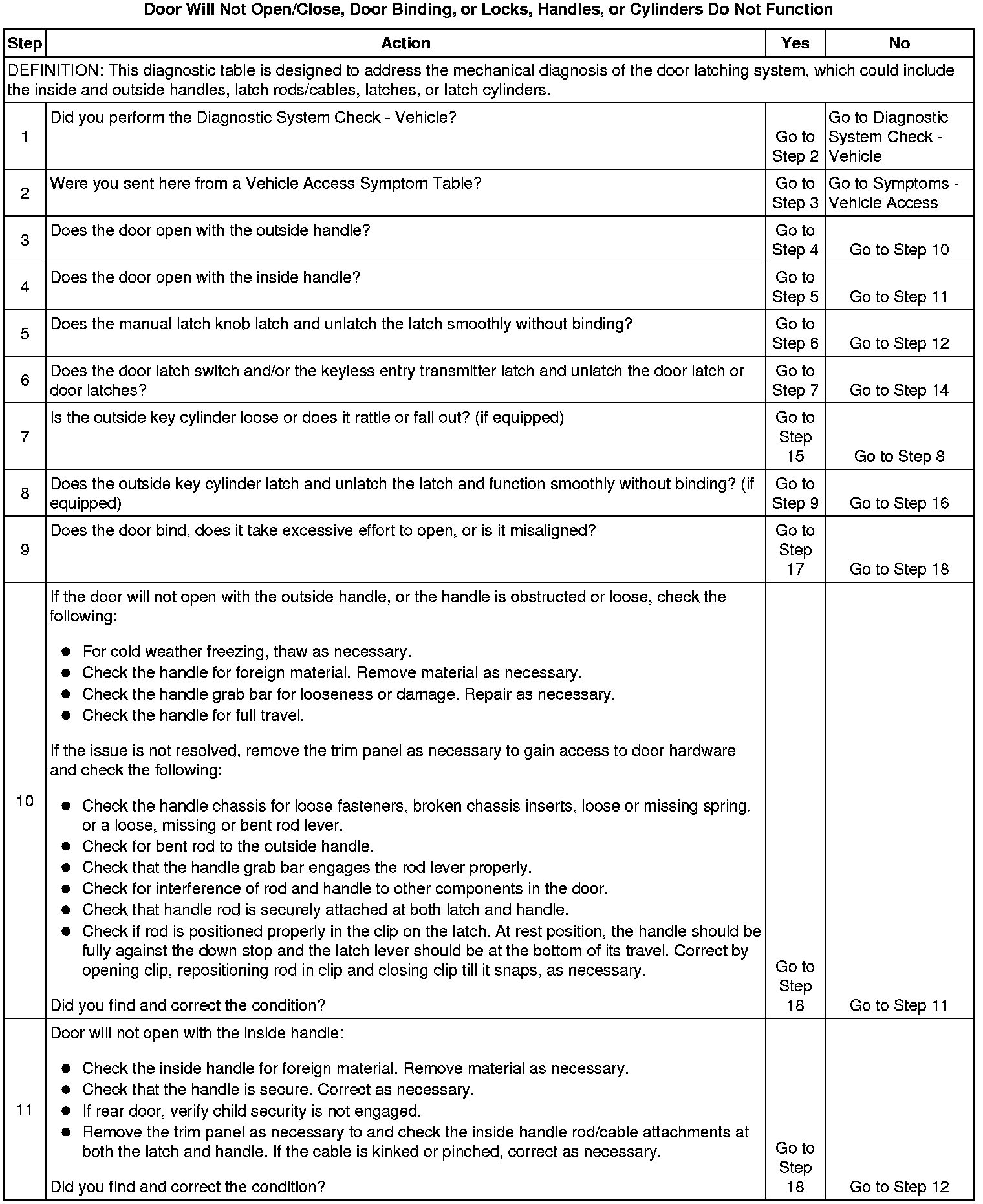 Door Will Not Open/Close, Door Binding, or Locks, Handles, or Cylinders Do Not Function