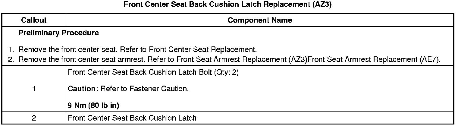Front Center Seat Back Cushion Latch Replacement (AZ3)
