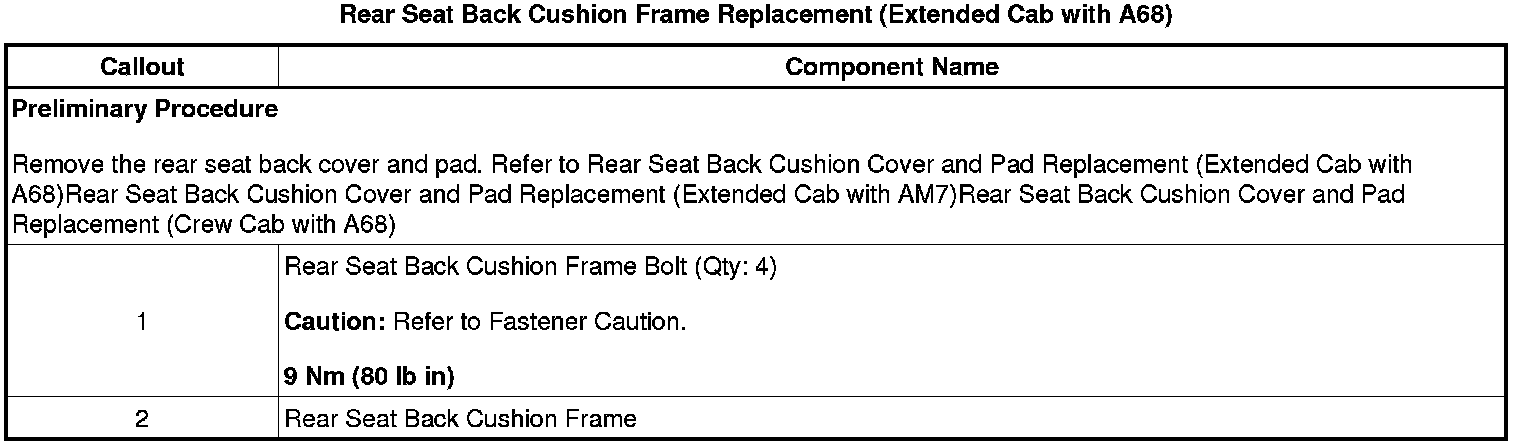 Rear Seat Back Cushion Frame Replacement (Extended Cab with A68)
