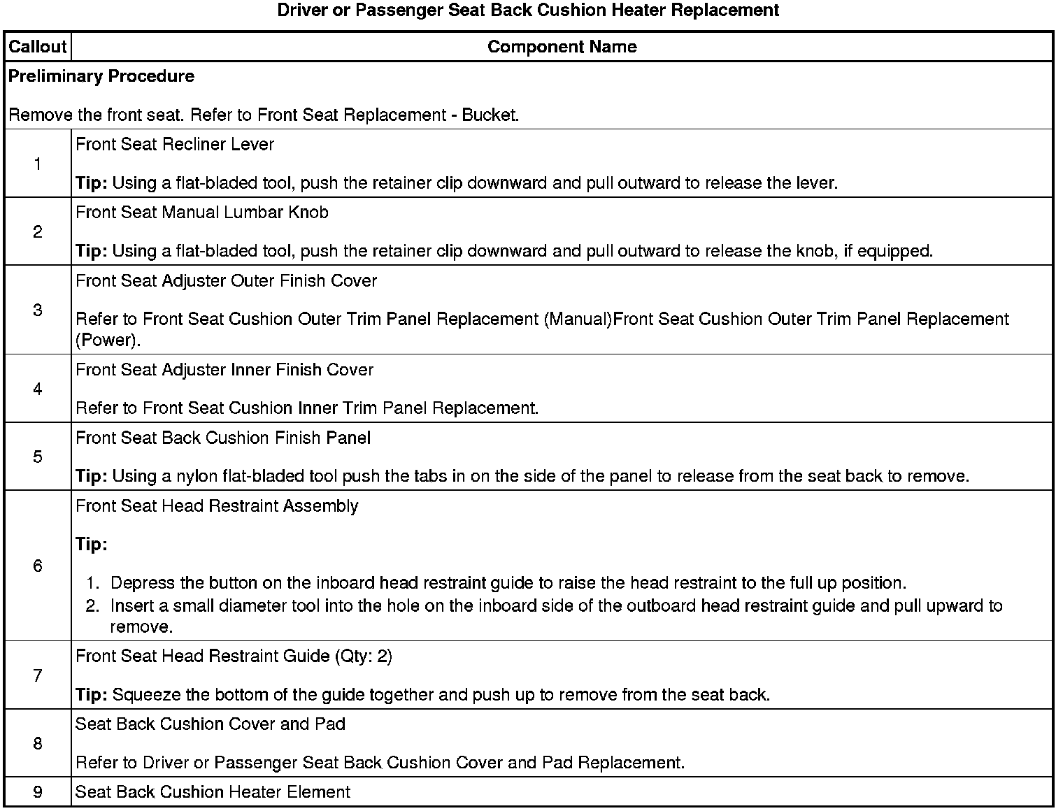 Driver or Passenger Seat Back Cushion Heater Replacement