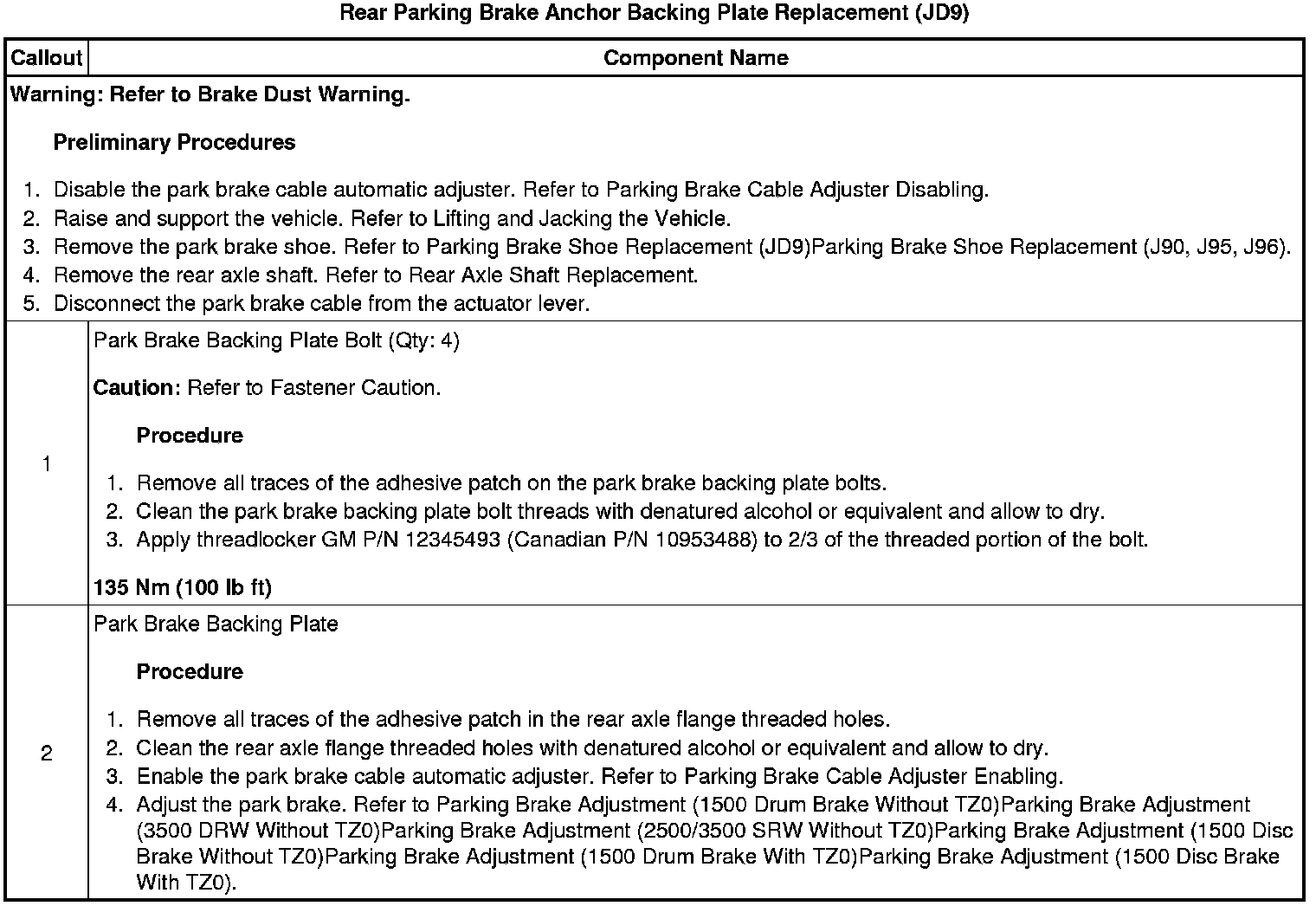 Rear Parking Brake Anchor Backing Plate Replacement (JD9)