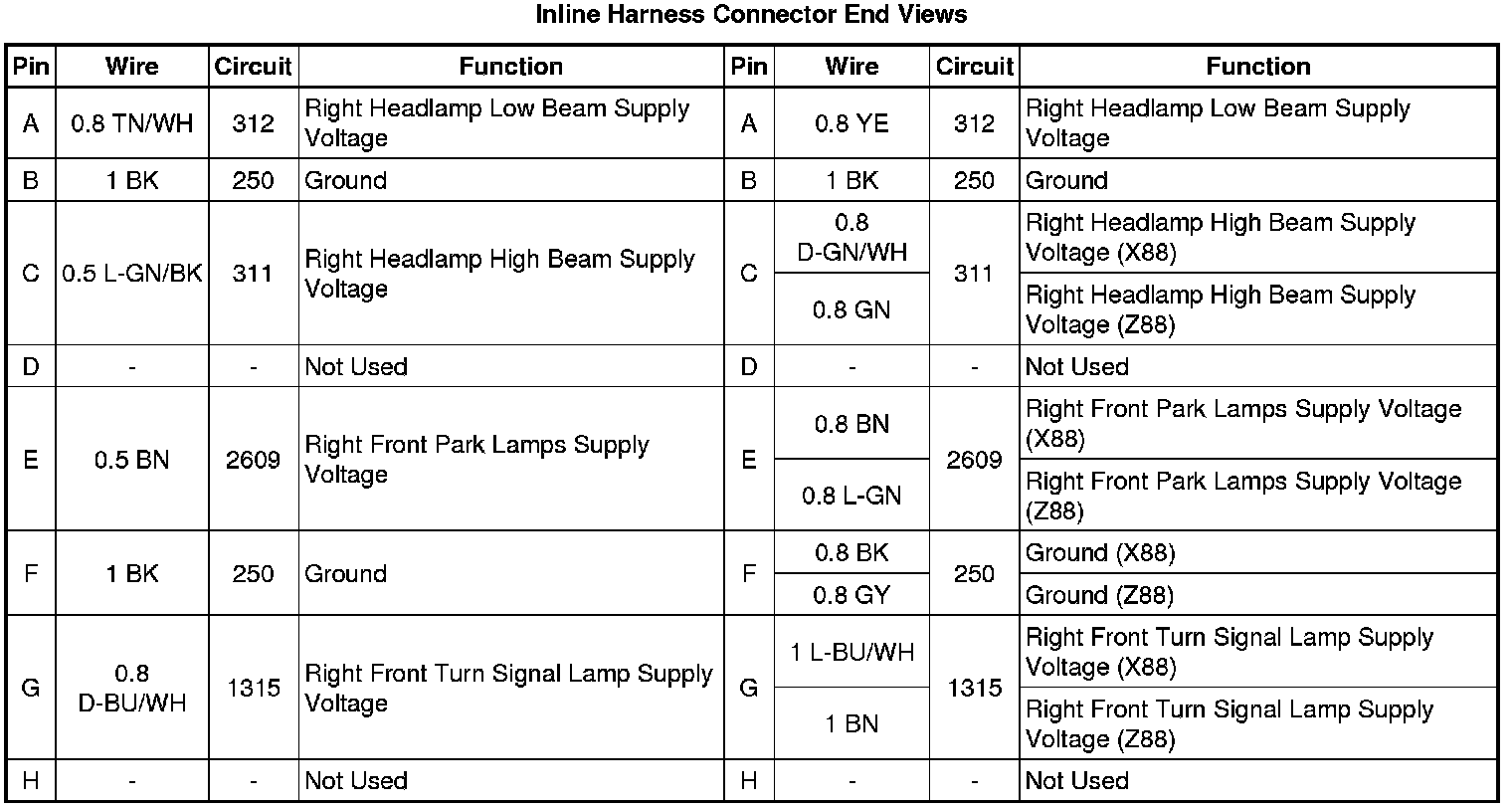 X106 Forward Lamp Harness to Right Front