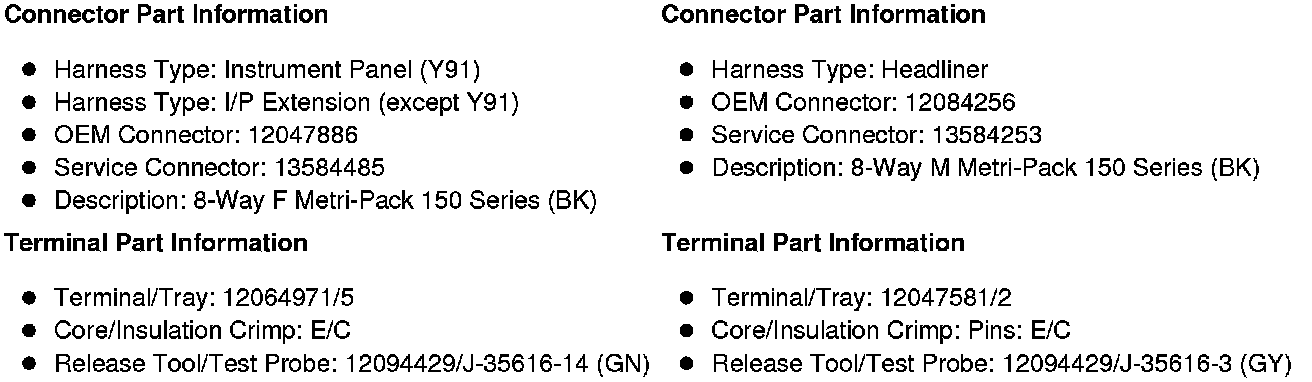 X203 Instrument Panel Harness (Y91) or I/P Extension Harness (except Y91) to