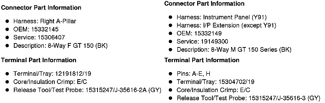 X206 Right A-Pillar Harness to Instrument Panel Harness (Y91) or I/P Extension Harness (except Y91) (U42)