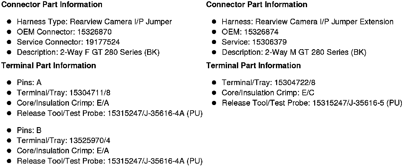 I/P Jumper Harness to Rearview Camera I/P Jumper Extension Harness (SPO Rearview Camera with KB6)