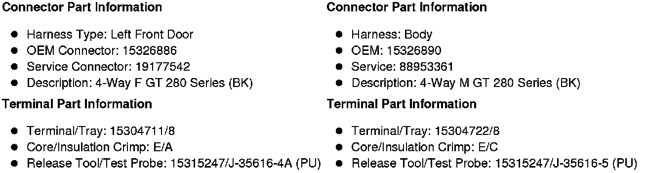 X502 Left Front Door Harness to Body Harness (ASF with AN3 or DL3, and except YE9)