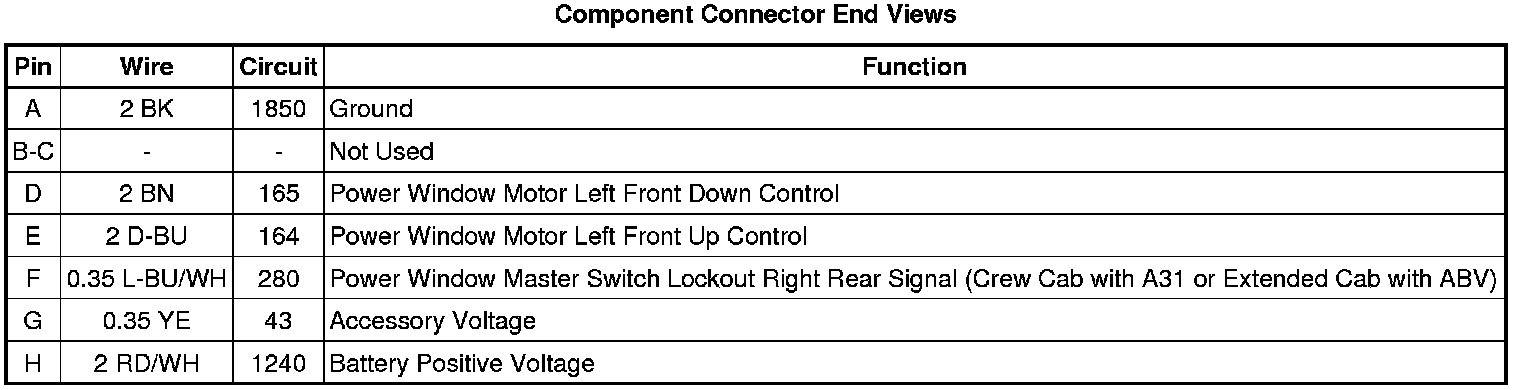 Window Switch - Driver X2 (A31 without AN3 or DL3)