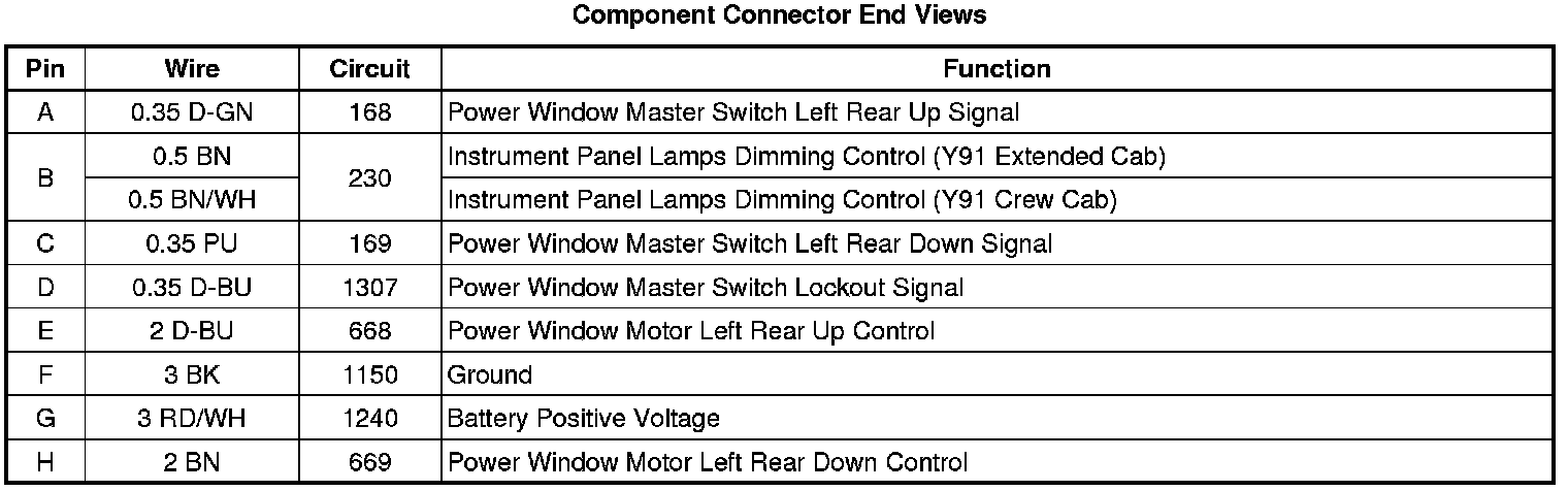 Window Switch - Left Rear (Crew Cab with A31 or Extended Cab with ABV)