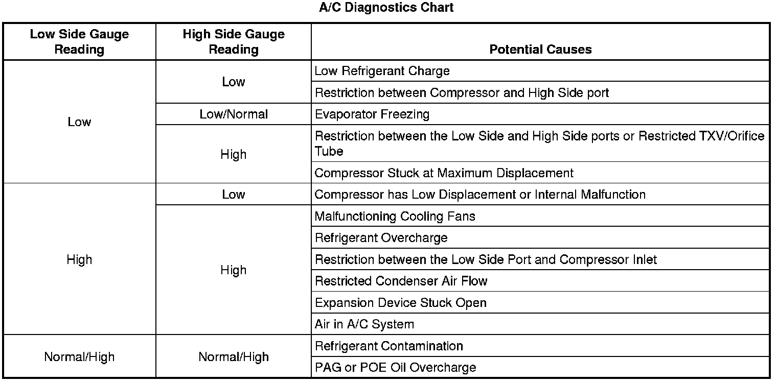 A/C Diagnostics Chart