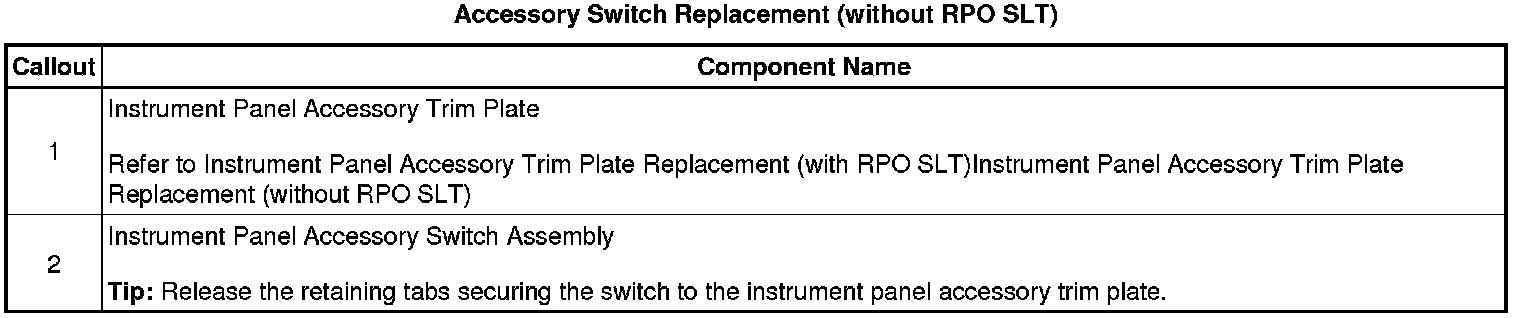 Accessory Switch Replacement (without RPO SLT)
