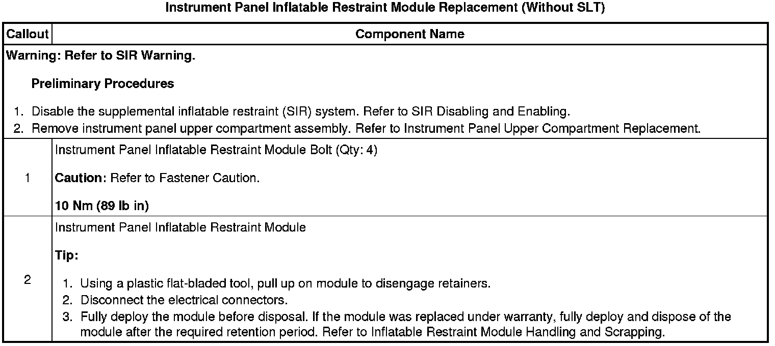 Instrument Panel Inflatable Restraint Module Replacement (Without SLT)