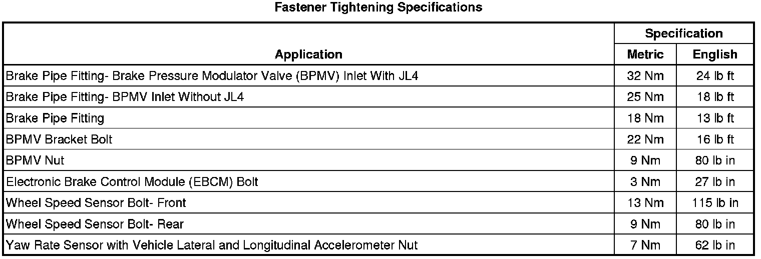 Fastener Tightening Specifications