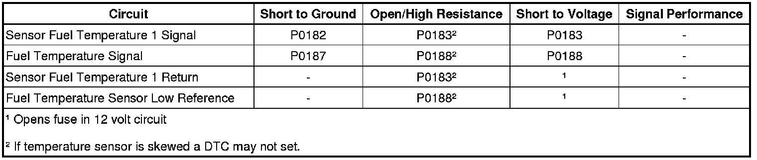 * Open, high resistance or shorted fuel temperature sensor signal circuit.