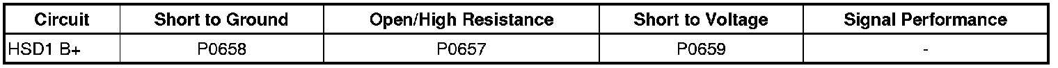 The TCM detects a short to ground on the HSD1 circuit for 1 second when the engine is running or cranking.