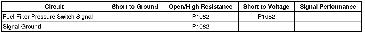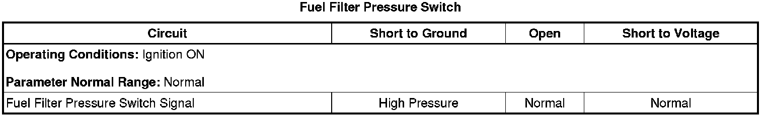 * The ECM detects an open or short to voltage in the Fuel Filter Pressure Switch Signal circuit.