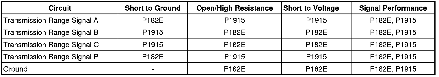 The manual shift detent lever with shaft position switch assembly or internal mode switch (IMS) assembly is a sliding contact switch attached to the control valve body within the transmission. The 4 inputs to the transmission control module (TCM) from the switch indicate which position is selected by the transmission manual shaft. The input voltage at the TCM is high when the switch is open and low when the switch is closed to ground. The state of each input is displayed on the scan tool as IMS. The IMS input parameters represented are transmission range signal A, Signal B, signal C, and signal P.